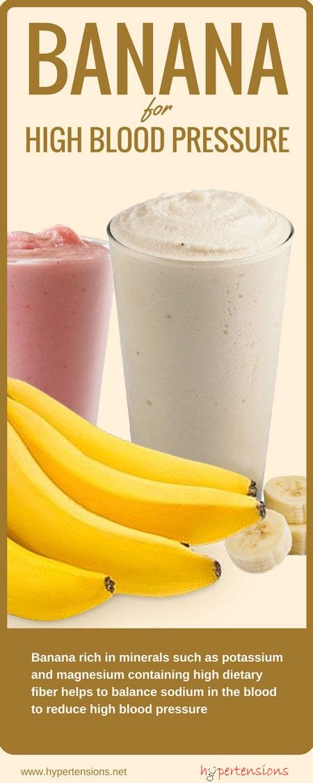 The good news is, if your high blood pressure is mainly caused by high sodium intake, adding a couple of bananas to your daily diet, along with other potassium-rich foods (2), can definitely make a difference. Here's the winning formula for natural ways to lower blood pressure and a high blood pressure diet: eat bananas, exercise regularly, cut back on salty and fatty foods, and be patient – it might take a month to see a change in your blood pressure.